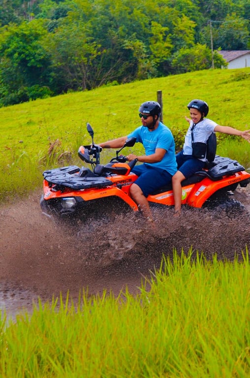 Para os amantes de aventura, o passeio de quadriciclo em Porto Seguro oferece emoção do início ao fim. Com trilhas cheias de poças d'água e lama, é a atividade perfeita, especialmente para dias de chuva! O passeio é ideal para quem busca adrenalina, explorando as belezas naturais com muito mais emoção.