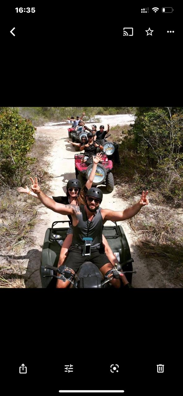 Parada na Praia de Mutá para fotos de quadriciclo com o belíssimo cenário da praia.