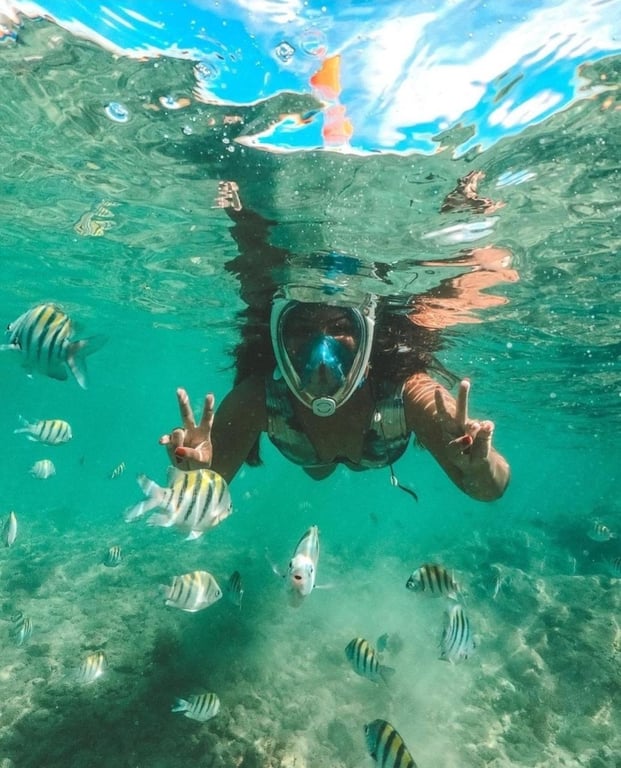 Descubra um paraíso subaquático sem precisar saber nadar! As piscinas naturais do Recife de Fora possuem profundidades de 1 a 1,5 metros, ideais para todos, desde iniciantes até os mais experientes. Se você souber nadar, poderá aproveitar ainda mais a experiência. O embarque acontece no píer e, após uma navegação de cerca de 45 minutos, você chegará ao Parque Marinho, onde um biólogo voluntário apresentará a incrível biodiversidade marinha local. Em seguida, você será conduzido até as piscinas naturais para uma experiência aquática única!